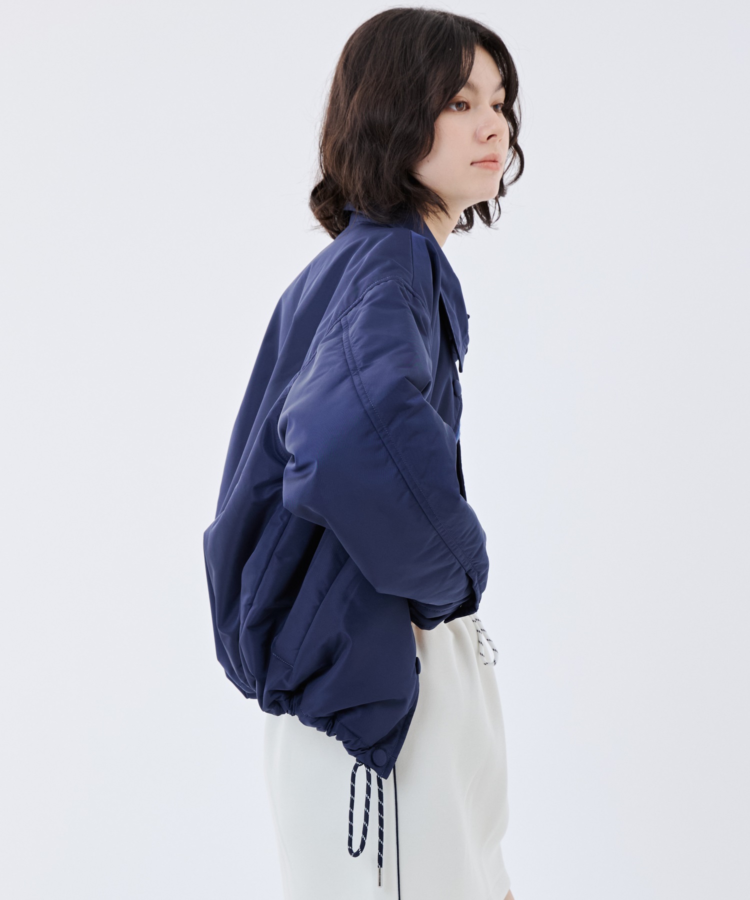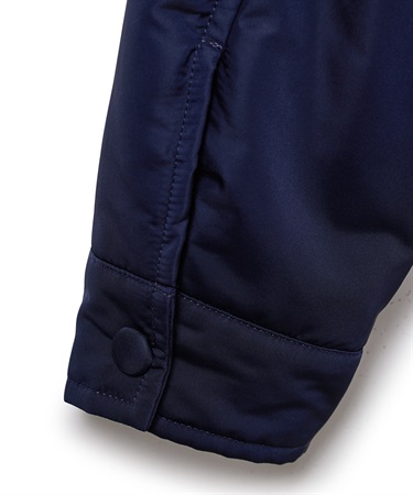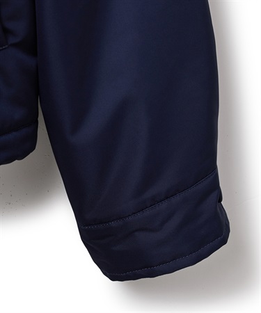 表地は小松マテーレの〈befond〉によるエコ撥水加工で、ちょっとした雨にも対応。中綿には、太陽や体温の赤外線を吸収して発熱する〈ソーラタッチ〉を採用し、軽さと暖かさを両立しました。シンプルなデザインに同色ドットボタンを合わせ、大人らしい印象に。デイリーからアウトドアまで幅広く活躍します。