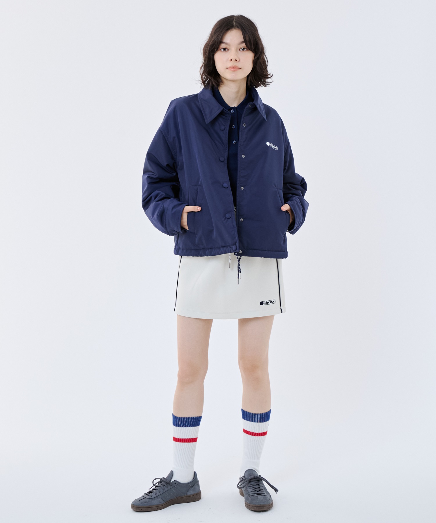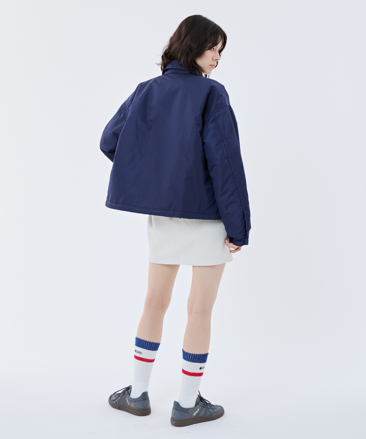 ネイビー着用モデル身長:166cm、着用サイズ:M