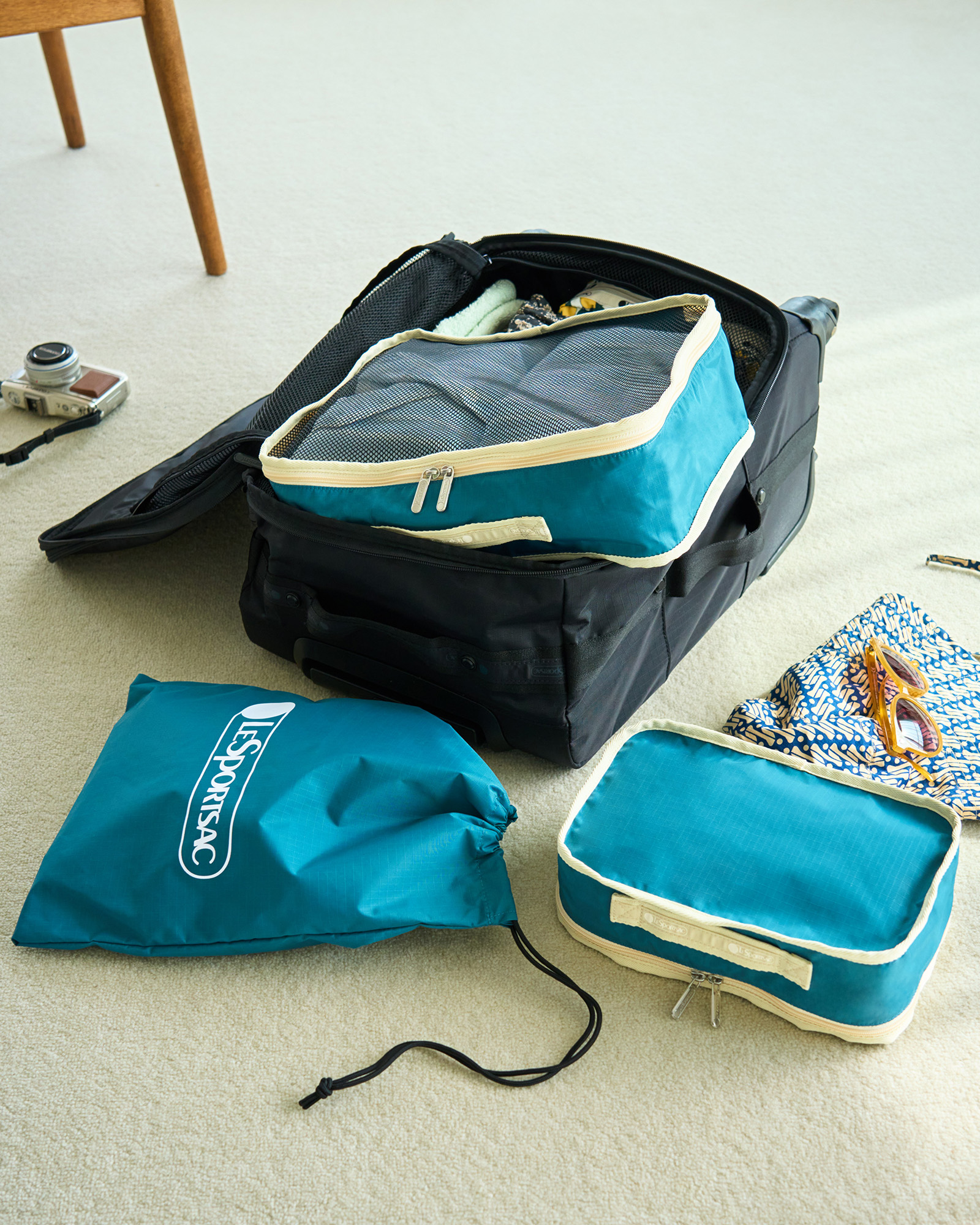 近場のアジアや2泊3日の国内などの旅行にはビッグトートとラゲッジの組み合わせがおすすめ。トートバッグはキャリーオン対応なので空港や現地での移動もスムーズ。