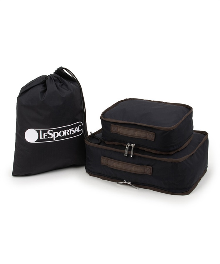 旅行、ホテルステイにも活躍するパッキングポーチセット。2サイズのポーチと巾着のセットで衣類の整理整頓や、細々したものの収納に便利。